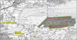bll competition A scheme for an airport, with a terminal & car park on Grain will be developed by Bll's architects. This in turn will be connected to an island in the estuary where the Bll competition will be held. |