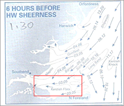 two islands - marinair The location of the airport in the mayor’s plan seems to be based on the TEACO Marinair proposals; details of which are limited (and have been criticised as such). From the available information this is to be located on the Kentish Flats where the water depth is less than 1 metre at low water springs. The latest proposals are for two runways on two islands connected by a tunnel beneath the sea; apparently to reduce any impact on tidal flows. It should be noted that the maximum spring tidal rates in this area (Kentish Flats) is 2.4 kts, 3 hours after HW Sheerness, but for most of the time it is a third of this. As such it is difficult to foresee any effective tidal power generation scheme as proposed by the mayor’s plan.