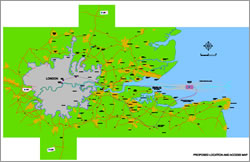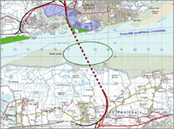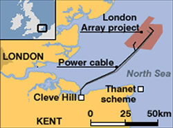 London Array Wind Farm Plans for two offshore wind farms in the Estuary including the world's biggest could produce enough renewable electricity to power one million households. The proposed £1.5bn London Array project covers 232 sq km between Margate in Kent and Clacton, Essex with 341 turbines rising from the sea about 20km off the coast. The 'Thanet scheme' covers 35 sq km off the north Kent coast. The original consortium included Shell WindEnergy Ltd, E.ON UK Renewables and Core Ltd, although this is under review.